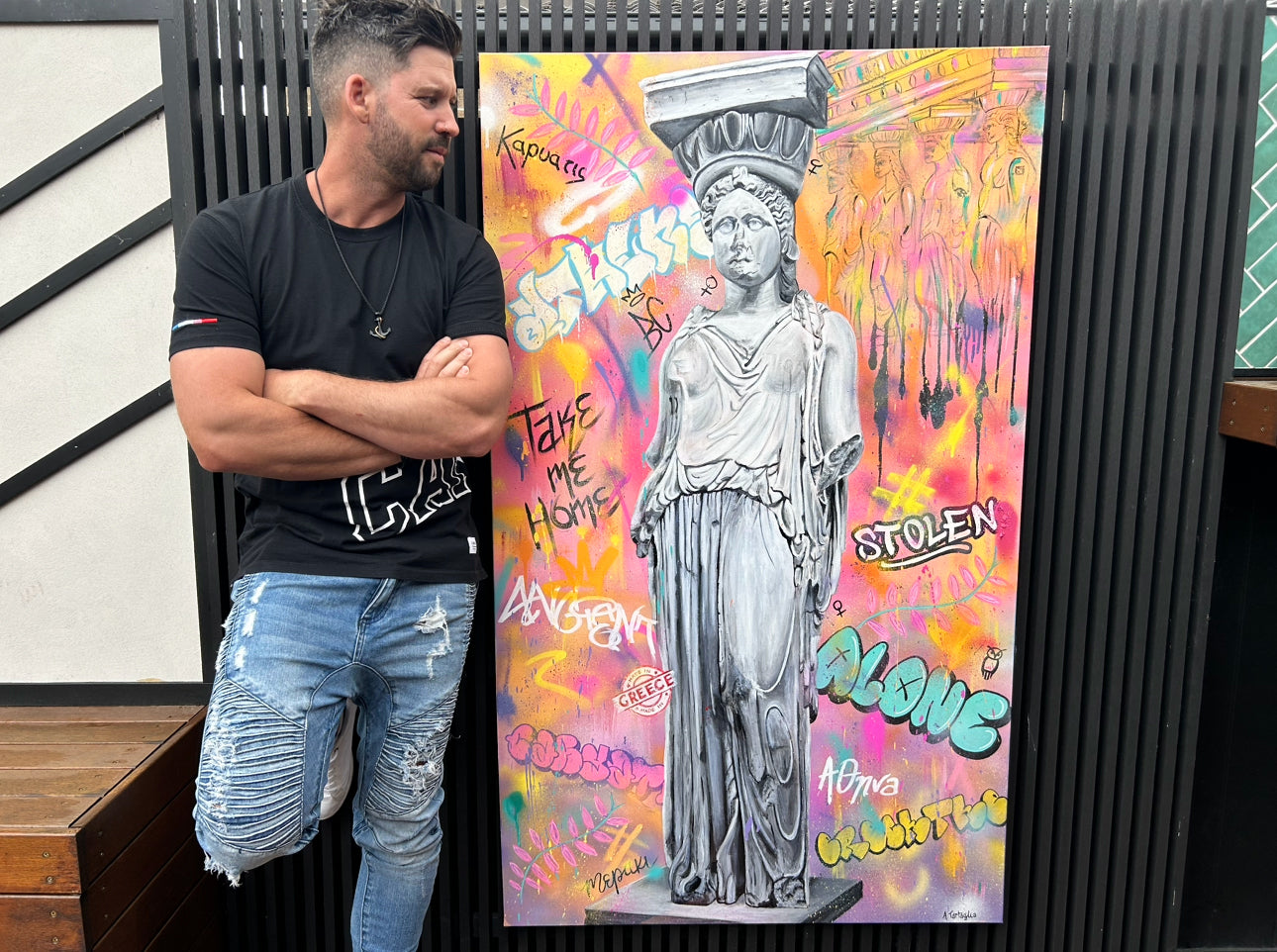 My inspiration is deeply rooted in Greek culture, encompassing mythology, ancient history, and modern influences. I love incorporating vibrant colours and graffiti elements into my pieces, giving them a contemporary twist. My goal is to create art that bridges the gap between ancient and modern aesthetics while fostering an appreciation for Greek heritage in today’s world. I see myself as a modern-day custodian of my ancestors' artistic legacy.